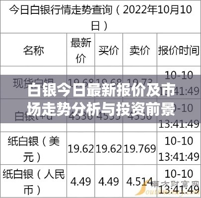 随着全球经济形势的不断变化,白银市场日益受到关注,本文将围绕“白银今日报价最新”这一主题,分析当前市场走势,展望投资前景,帮助投资者更好地把握市场机遇。