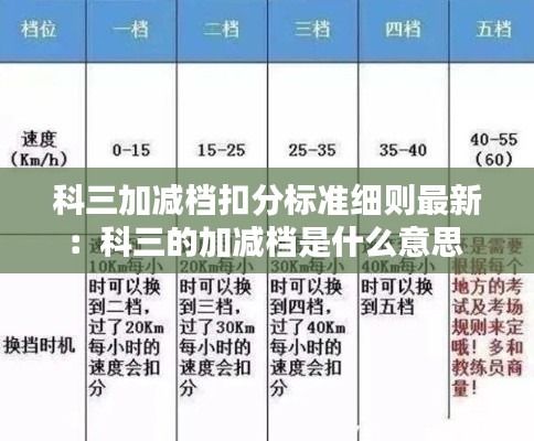 科目三道路驾驶技能考试是驾驶员考试中的一项重要环节,其中加减档操作是考试中的必考项目。加减档操作的准确性和熟练度直接影响到考试的最终成绩。以下是对科三加减档扣分标准的详细解析。