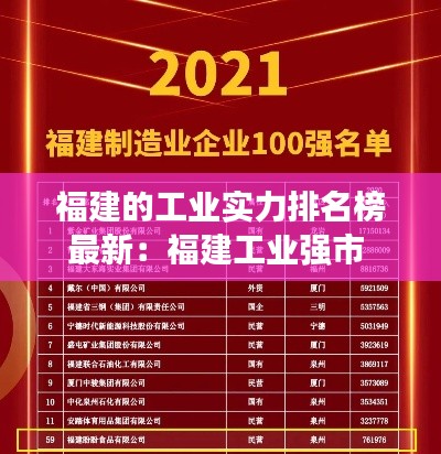 福建,位于中国东南沿海,是一个历史悠久、文化丰富的省份。近年来,福建省的工业实力得到了显著提升,成为了全国重要的工业基地之一。本文将为您揭示福建工业实力排名榜的最新情况,带您了解福建省各市工业发展的最新动态。
