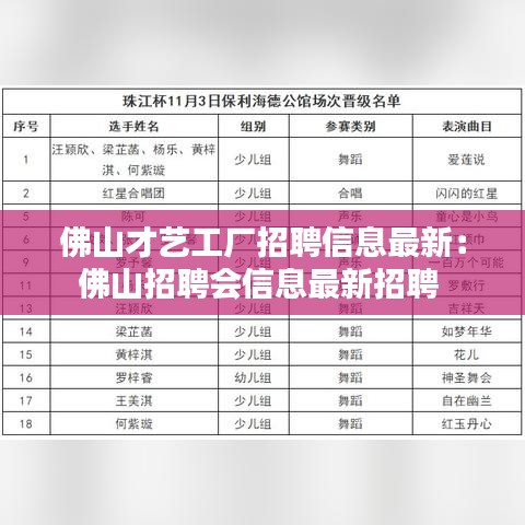 佛山才艺工厂招聘信息最新:佛山招聘会信息最新招聘